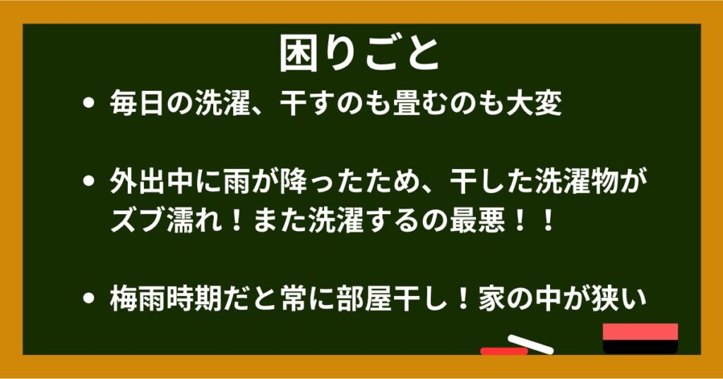 - 共働きで洗濯物を干す時間がない